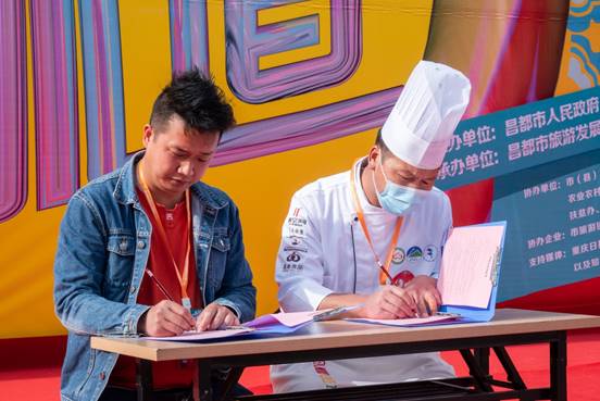 同时,重庆文旅馆同参赛人员进行现场签约,这对昌都餐饮业的推广和发展具有重要的意义。