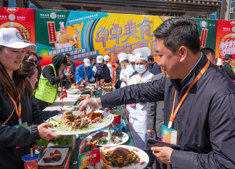 餐饮是服务行业的重要组成部分,对于拉动内需,促进农牧民增收、扩大就业渠道、促进百姓安居乐业具有非常重要的意义。为充分挖掘昌都市源远流长的饮食文化,创造地方饮食品牌,促进全市餐饮行业和旅游产业健康、快速发展,由昌都市人民政府主办,市旅游发展局、市文化局承办,卡若区人民政府、市工商联联合会、市委网信办、市公安局、市卫健委、昌都广播电视台、市商务局、市扶贫办、市人力资源和社会保障局、市市场监管局、市经济和信息化局、共青团昌都市委员会、市机关事务服务保障中心、市城市管理和综合执法局、市农业农村局、市财政局、市应急管理局、市生态环境局、市编译局协办,昌都市卓卓康巴体育旅游产业发展有限公司执行的2021年卓卓康巴美食大赛总决赛于5月15日在昌都市茶马广场顺利举行。